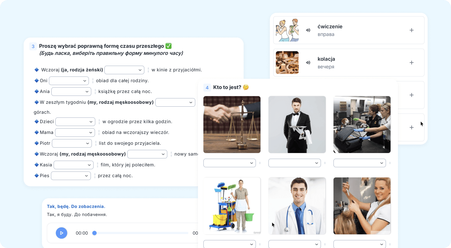 навчання у зручному форматі з відео, вправами та розмовами онлайн