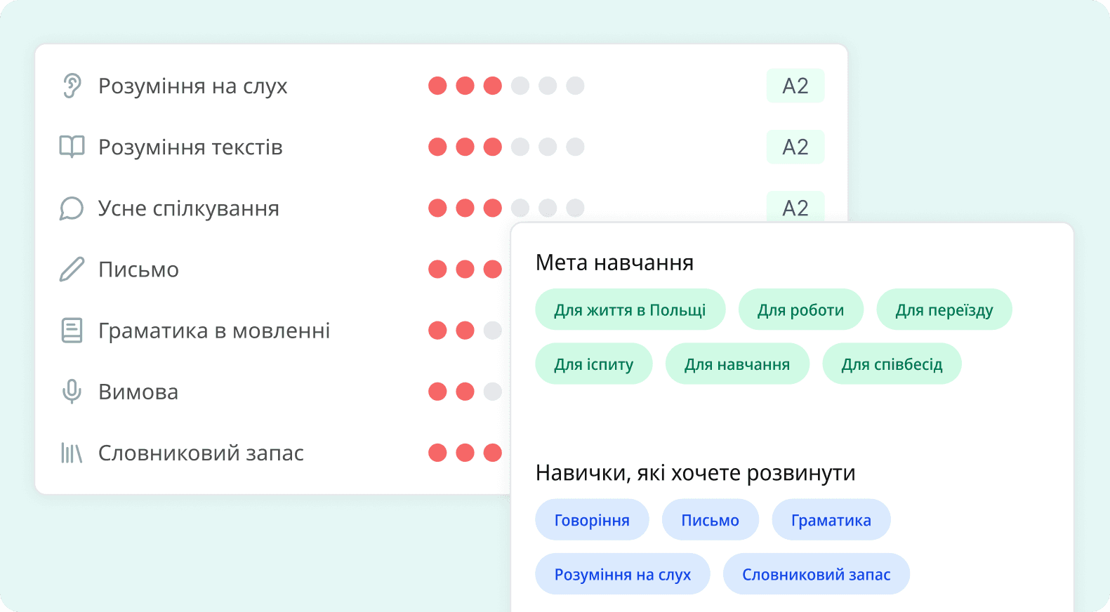 Тест: рівень + мета навчання